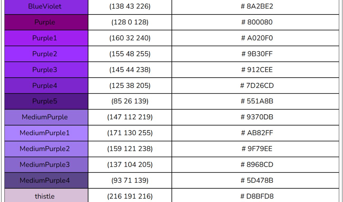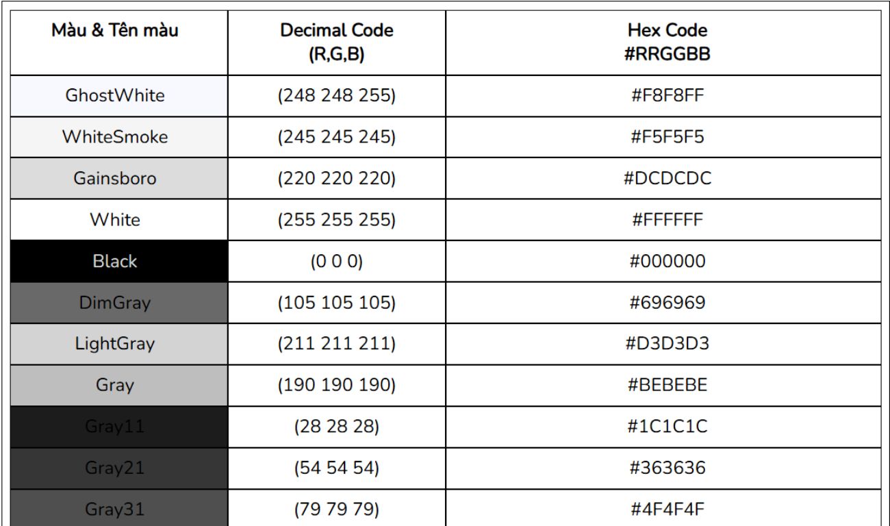 - Mã màu CSS: dùng để định dạng màu sắc trong CSS.