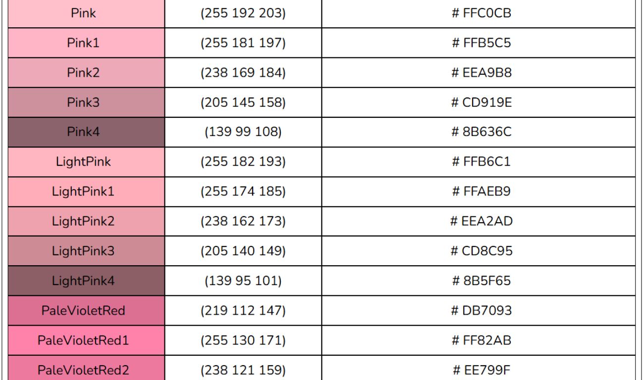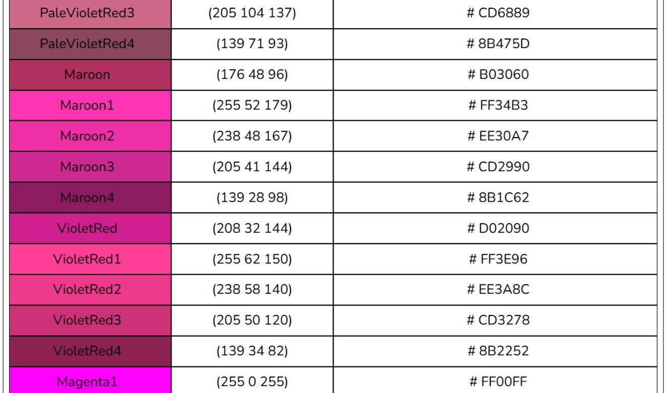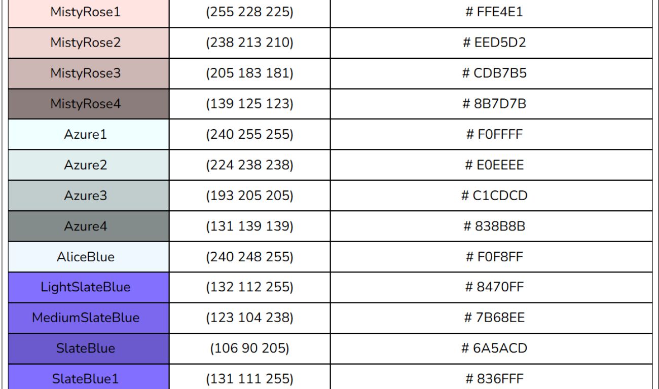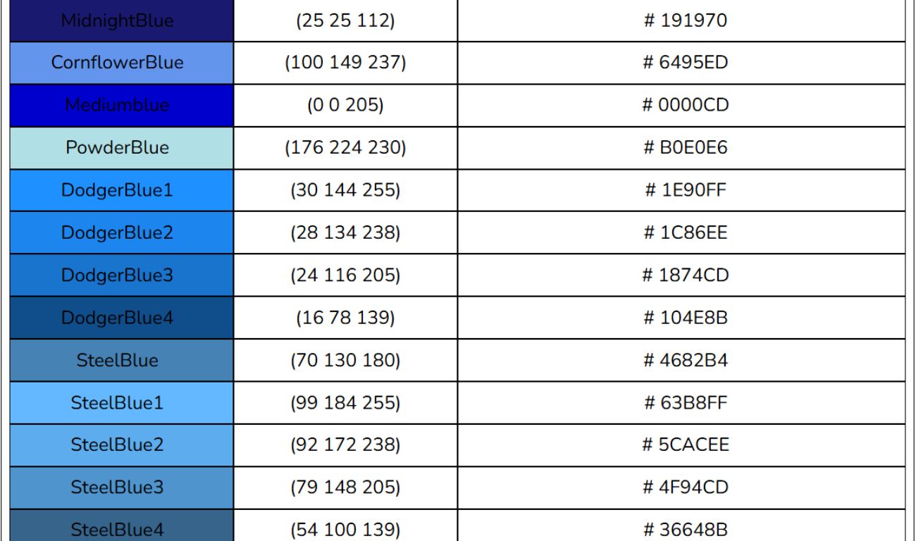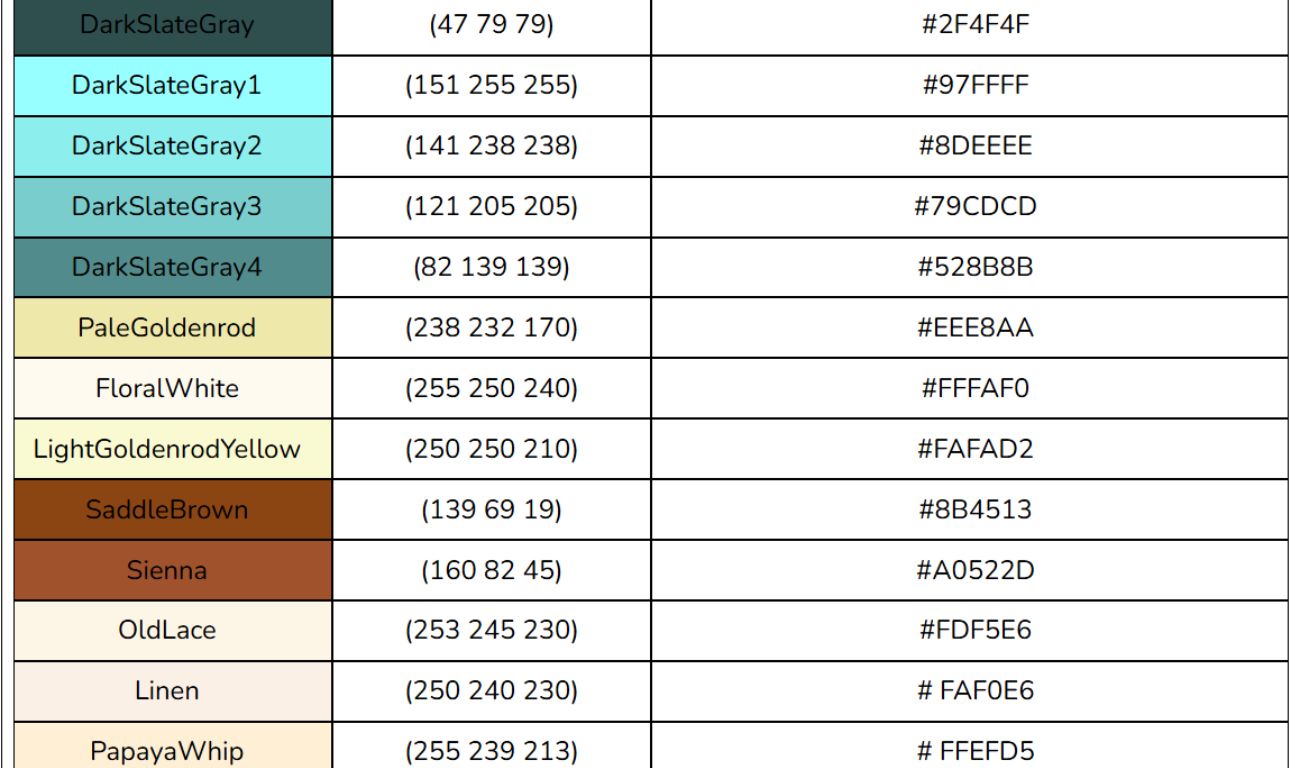 Bảng mã màu HTML, RGB, CSS