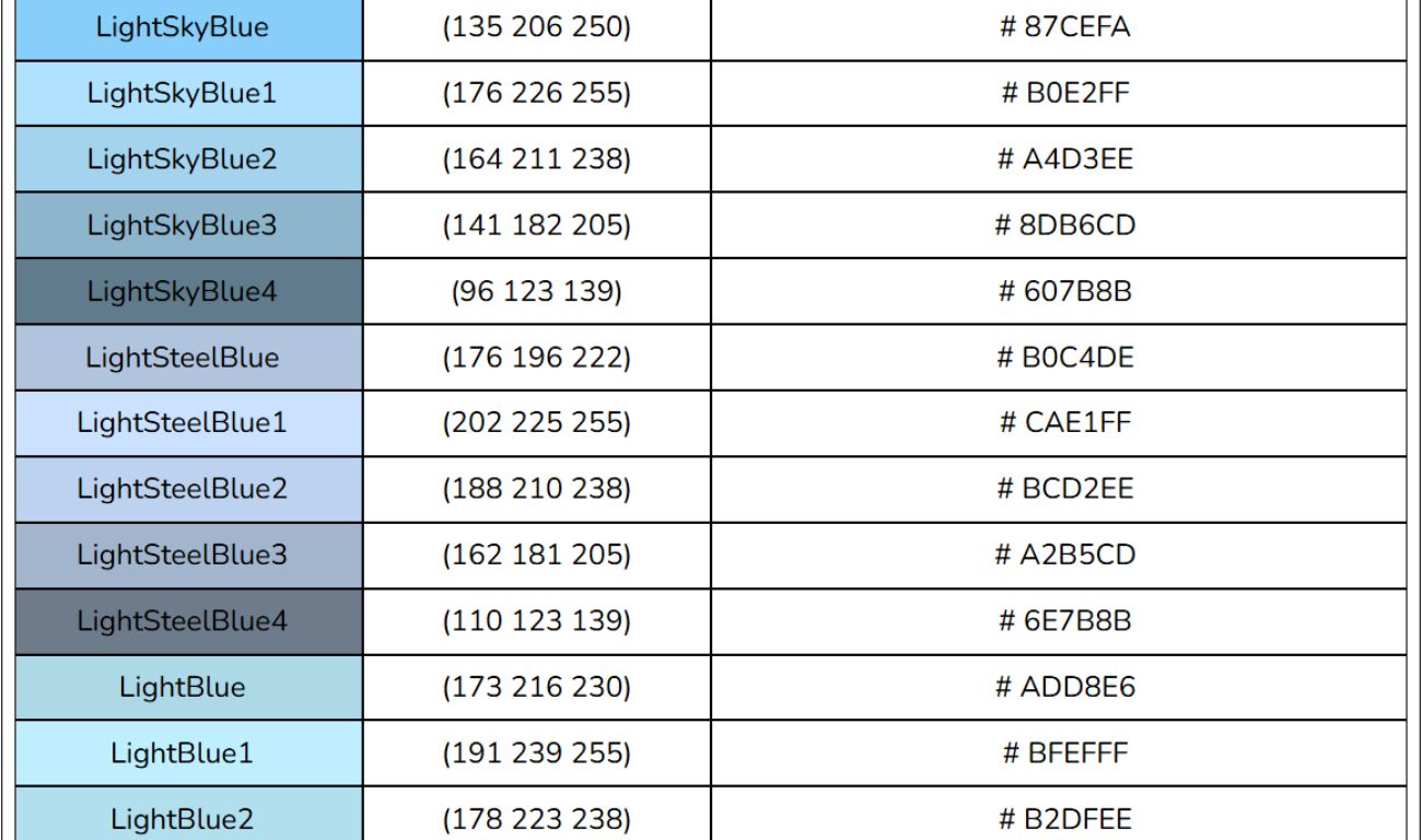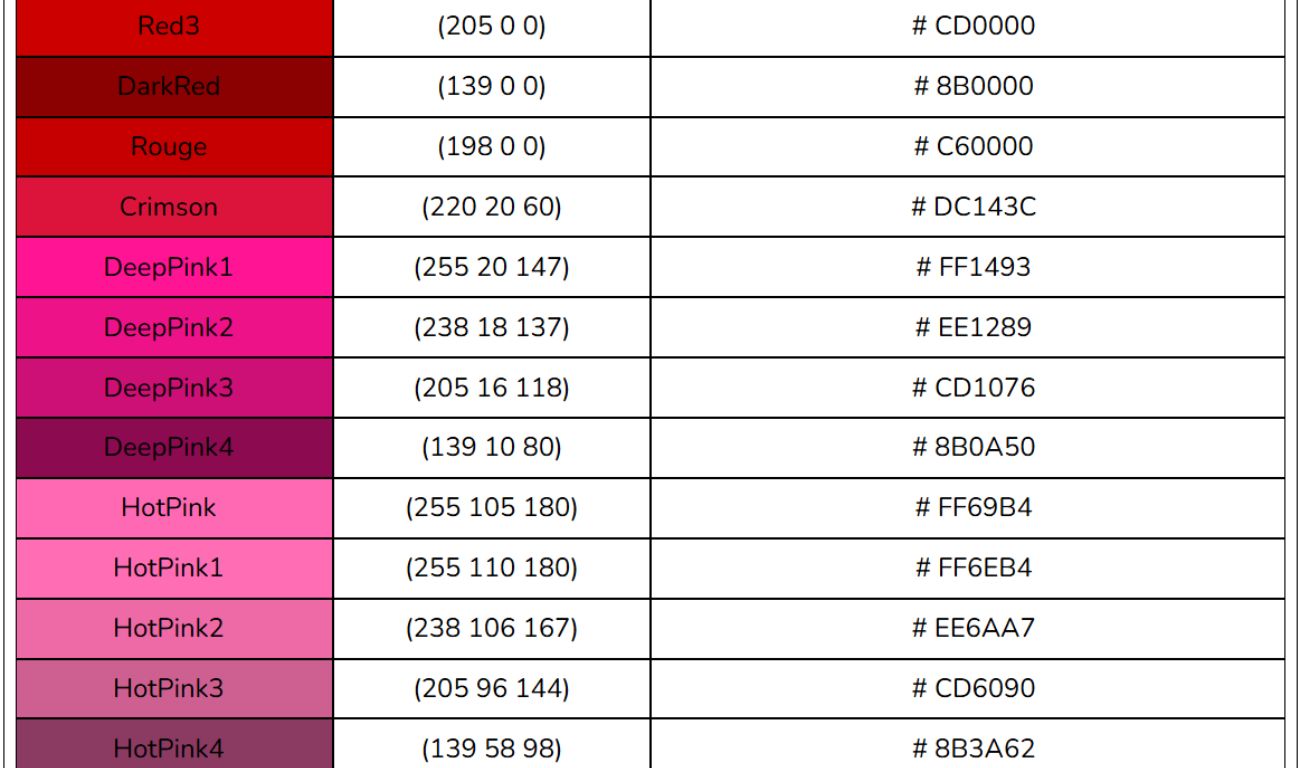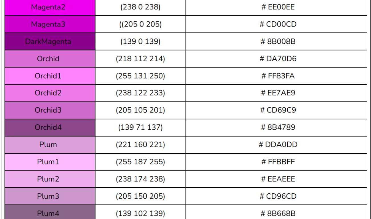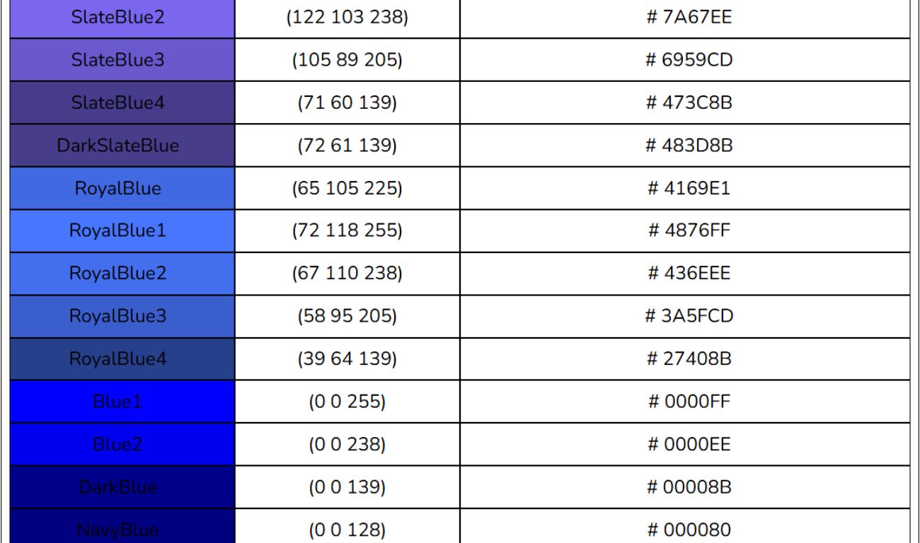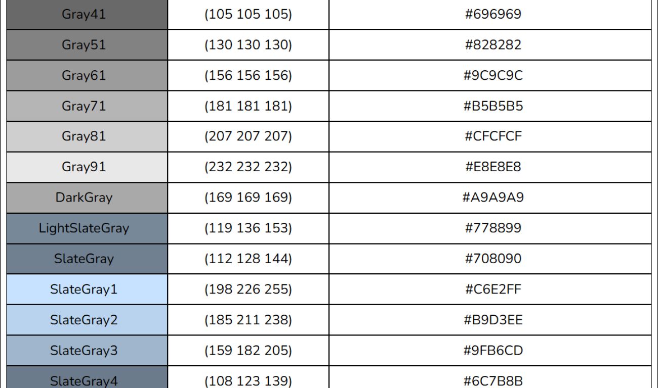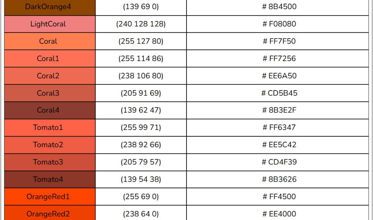 Bảng mã màu HTML, RGB, CSS