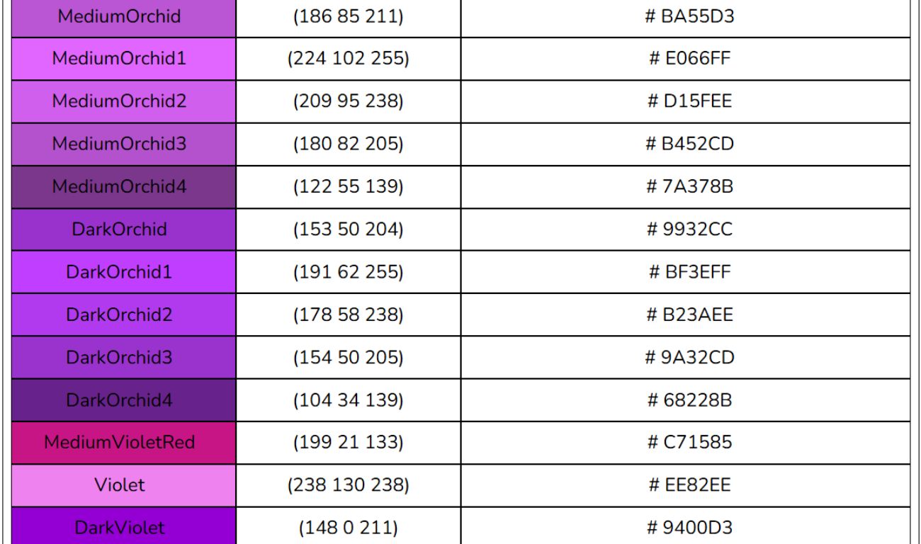 Bảng mã màu HTML, CSS, RGB