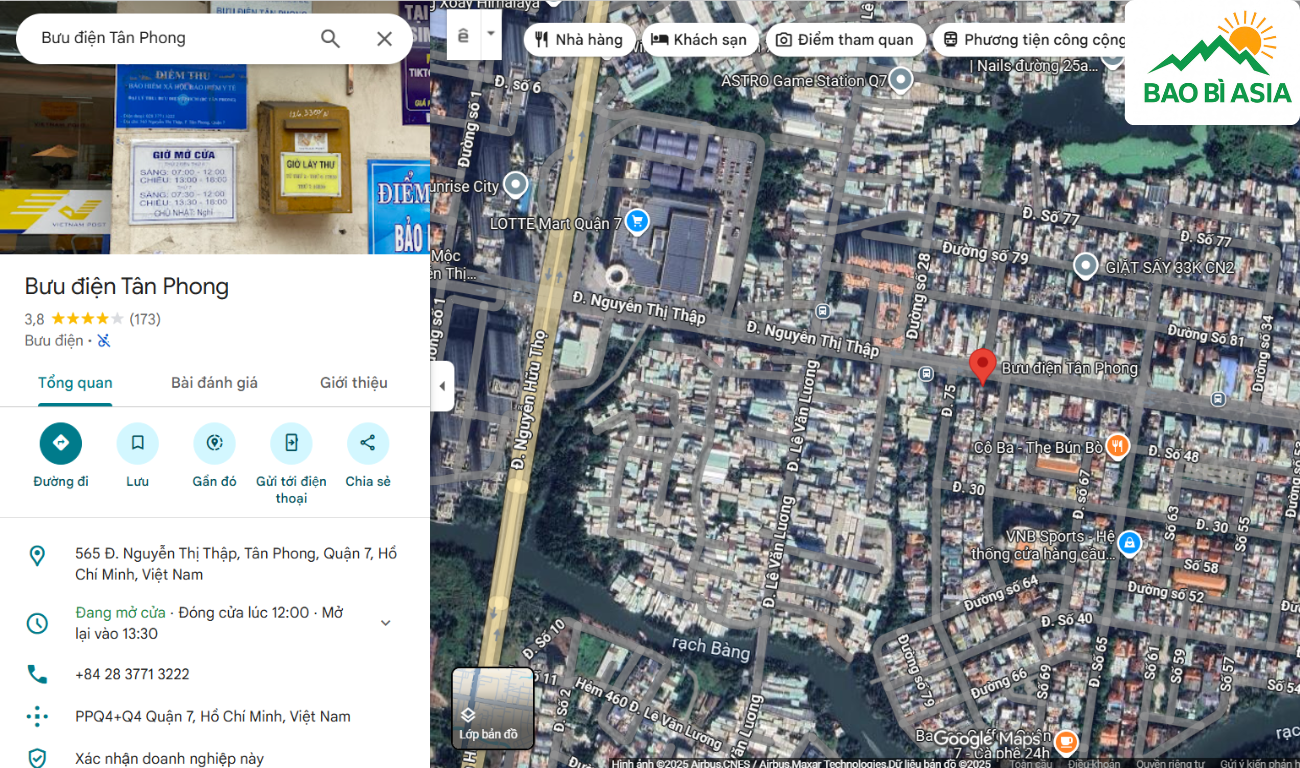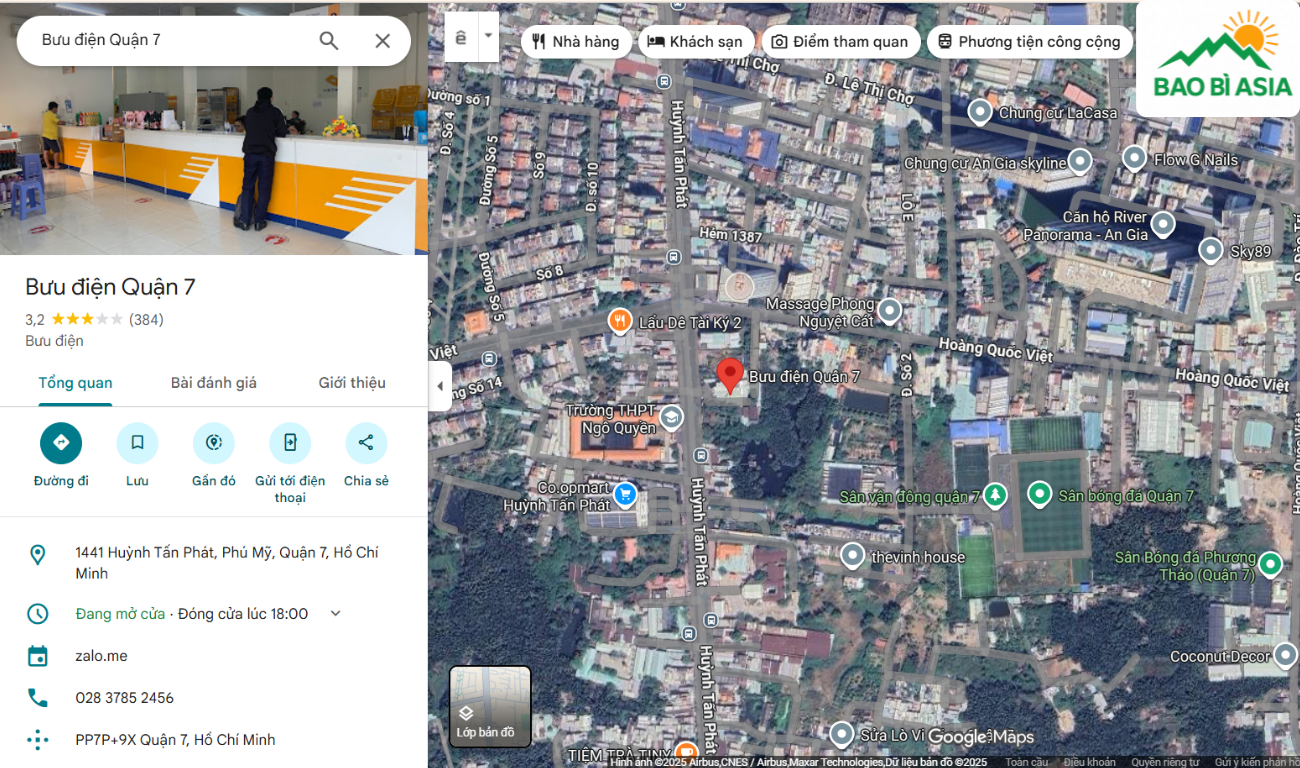Nhu cầu vận chuyển hàng hóa ngày càng tăng cao, kéo theo sự mở rộng của hệ thống bưu cục trên cả nước. Là đơn vị chuyên cung cấp các giải pháp đóng gói chất lượng như thùng giấy, hộp giấytúi giấy, Bao Bì Asia thấu hiểu rằng việc tìm kiếm một địa chỉ gửi hàng thuận tiện là mối quan tâm của nhiều người. Chính vì thế, chúng tôi đã tổng hợp danh sách bưu điện tại Quận 7 để bạn dễ dàng tra cứu khi có nhu cầu: