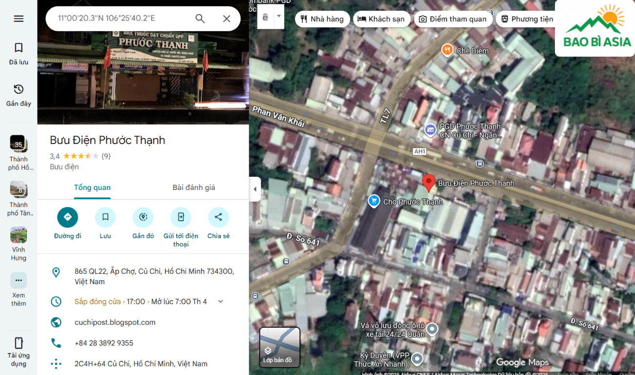 - Google Maps: Bưu cục cấp 3 Thị Trấn Củ Chi.