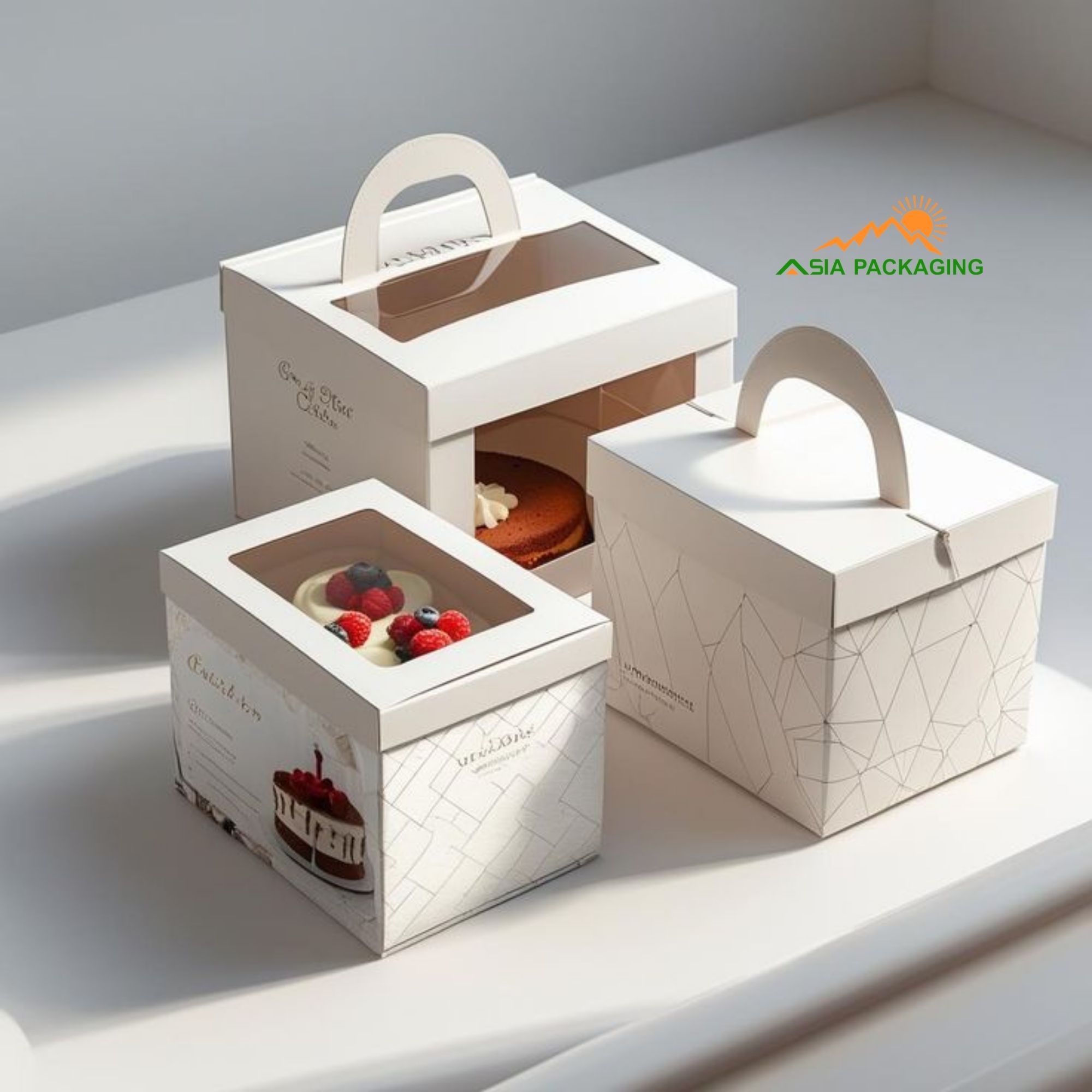 - Thiết kế mẫu hộp riêng: Bao Bì Asia nhận thiết kế và sản xuất hộp bánh kem theo yêu cầu riêng của doanh nghiệp.