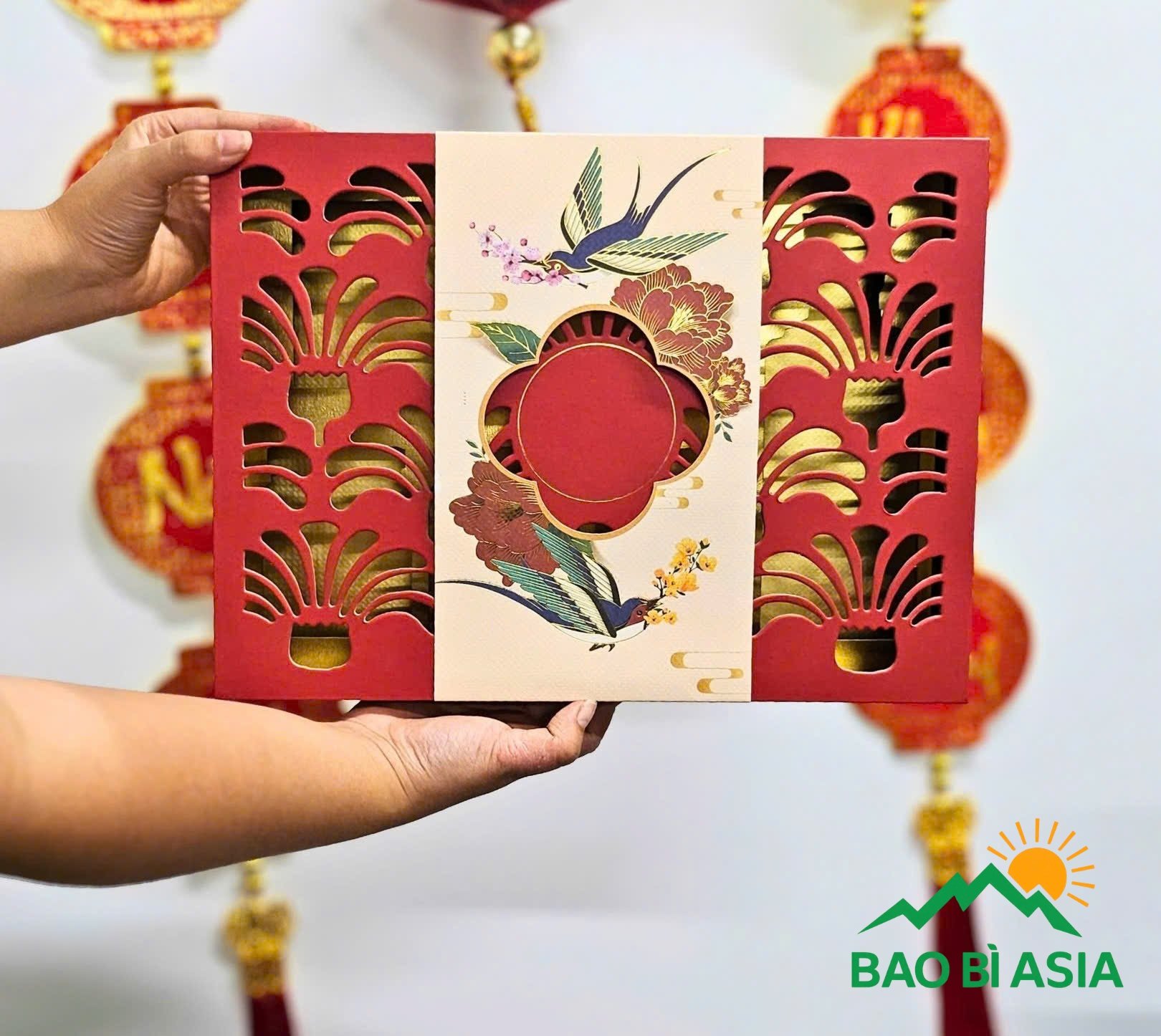 - In 4 màu, cán gân, ép kim, bế hoa văn