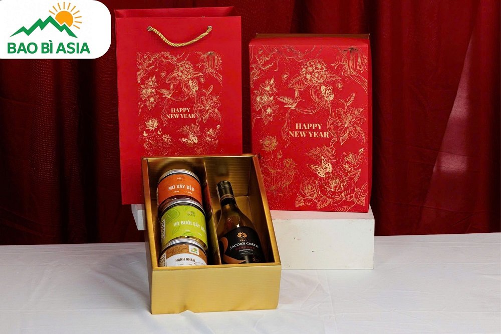 Hộp quà Tết trung Kim Vũ Đỏ 23.5 x 36.5 x 11cm giấy Ivory