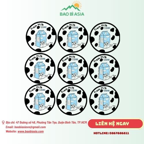 Bao Bì Asia nhận in decal sữa với số lượng từ 500 decal, đáp ứng mọi nhu cầu của khách hàng. Và hoàn thành đơn hàng nhanh chóng, trung bình chỉ 2 ngày làm việc, giúp tiết kiệm thời gian và có được sản phẩm mong muốn.