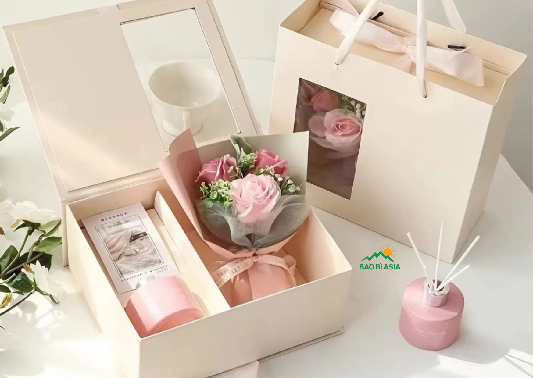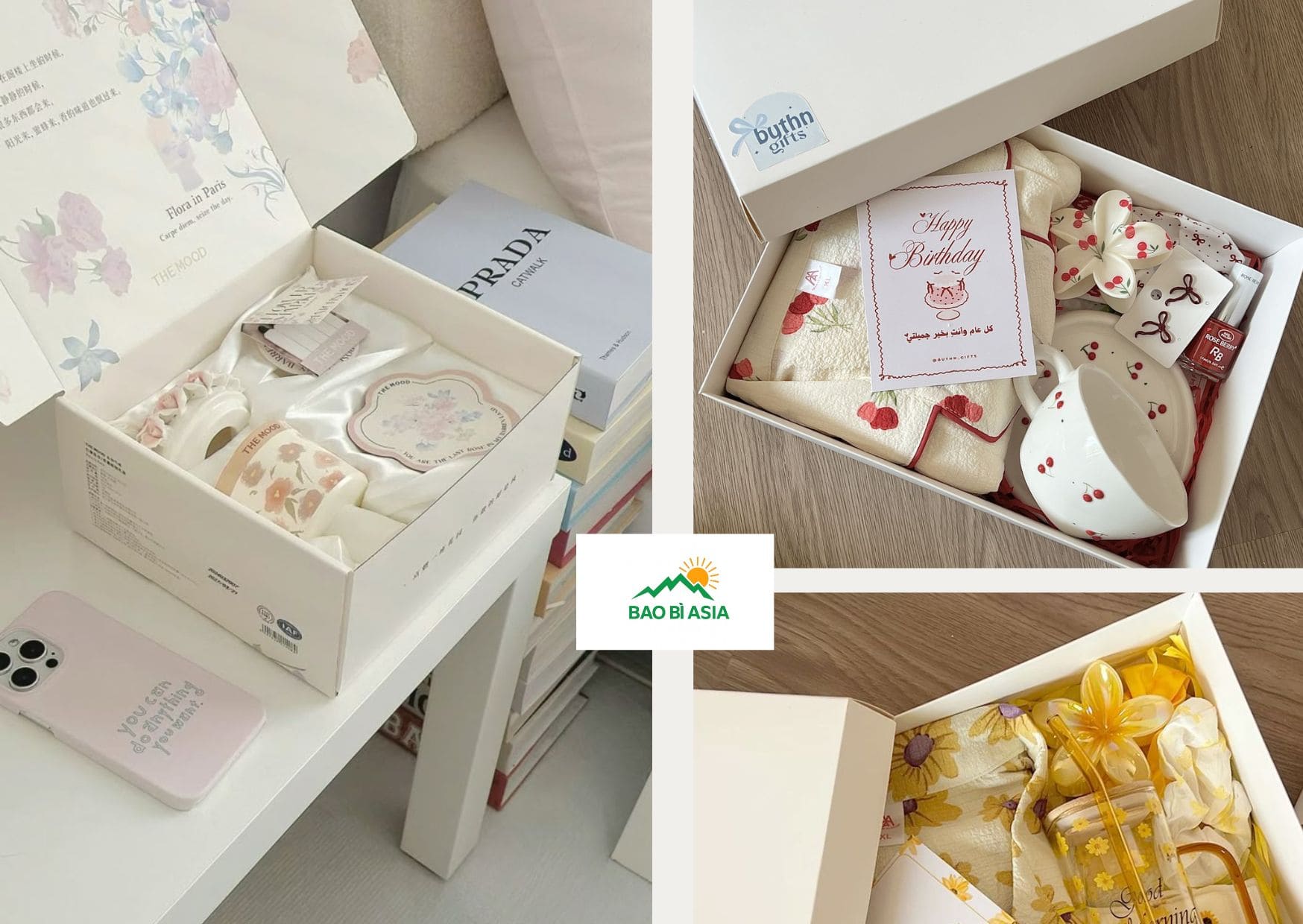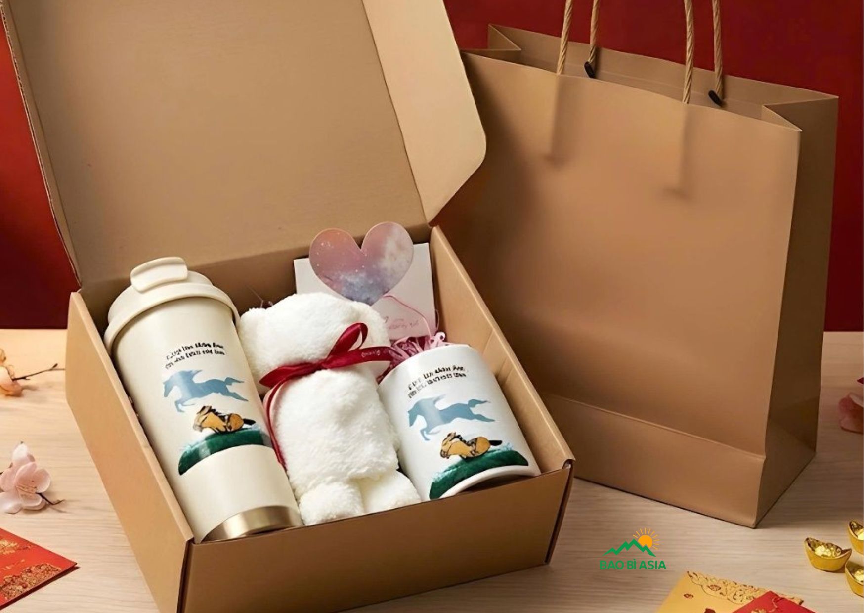 Bên cạnh đó, Bao Bì Asia liên tục cập nhật các xu hướng thiết kế bao bì mới và ứng dụng công nghệ vào quy trình sản xuất, giúp hộp quà không chỉ đẹp về thẩm mỹ mà còn bền, tiện dụng và có giá trị sử dụng lâu dài.