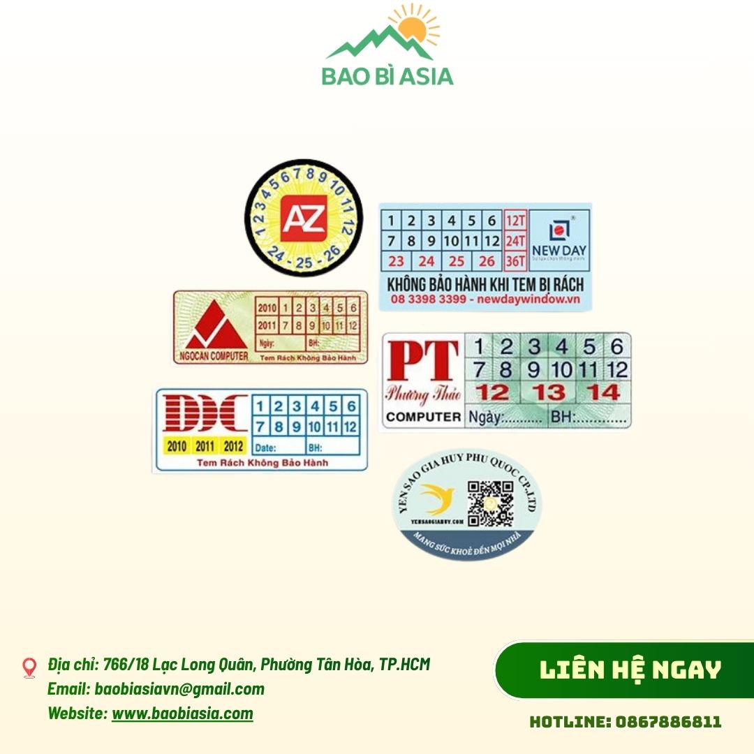 - Tem nhãn bảo mật: Tem VOID, tem bể, tem niêm phong chống tráo hàng.