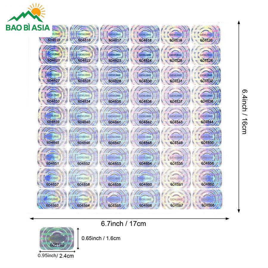 Bao Bì Asia cung cấp tất cả các loại tem chống hàng giả chất lượng với mọi hình dáng, kích thước, thiết kế,… với chính sách giá minh bạch, rõ ràng. Giá in tem chống giả sẽ phụ thuộc vào: