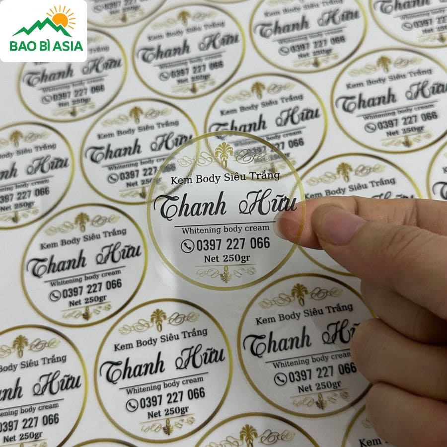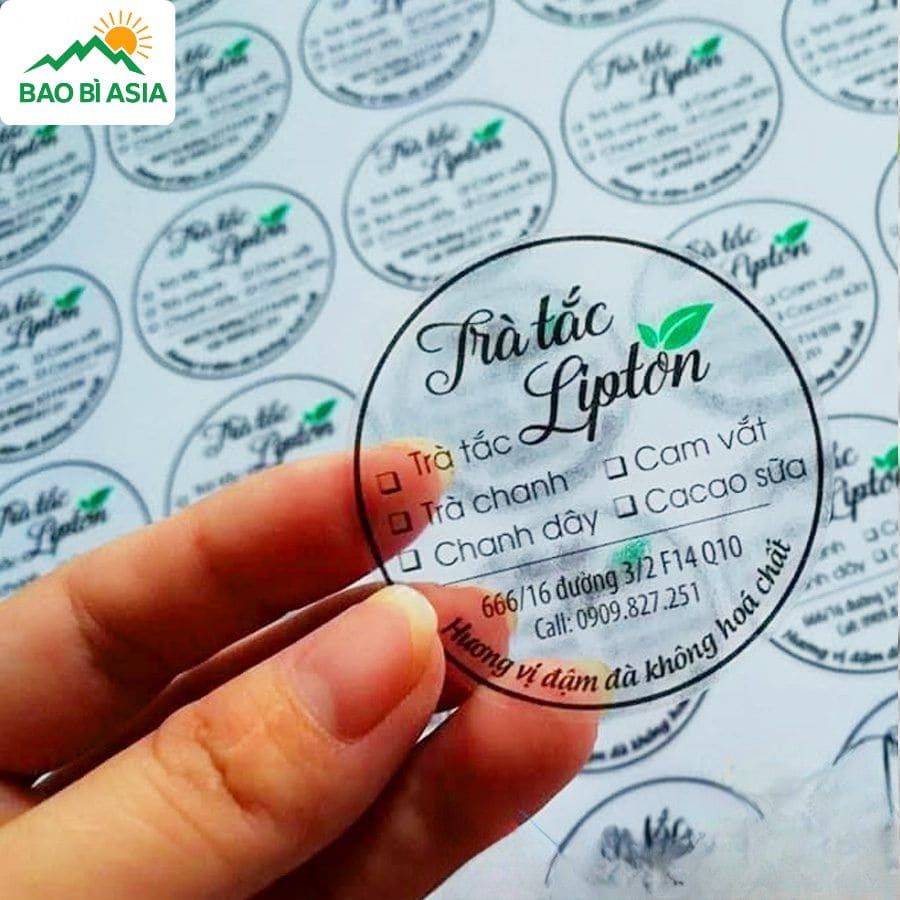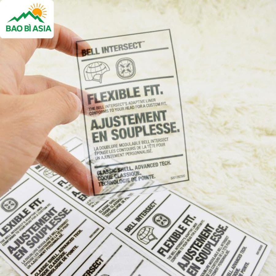 Bao Bì Asia cung cấp tất cả các loại decal trong suốt dán sản phẩm với mọi hình dáng, chất liệu, thiết kế,… với chính sách giá minh bạch, rõ ràng. Giá in decal trong suốt sẽ phụ thuộc vào: