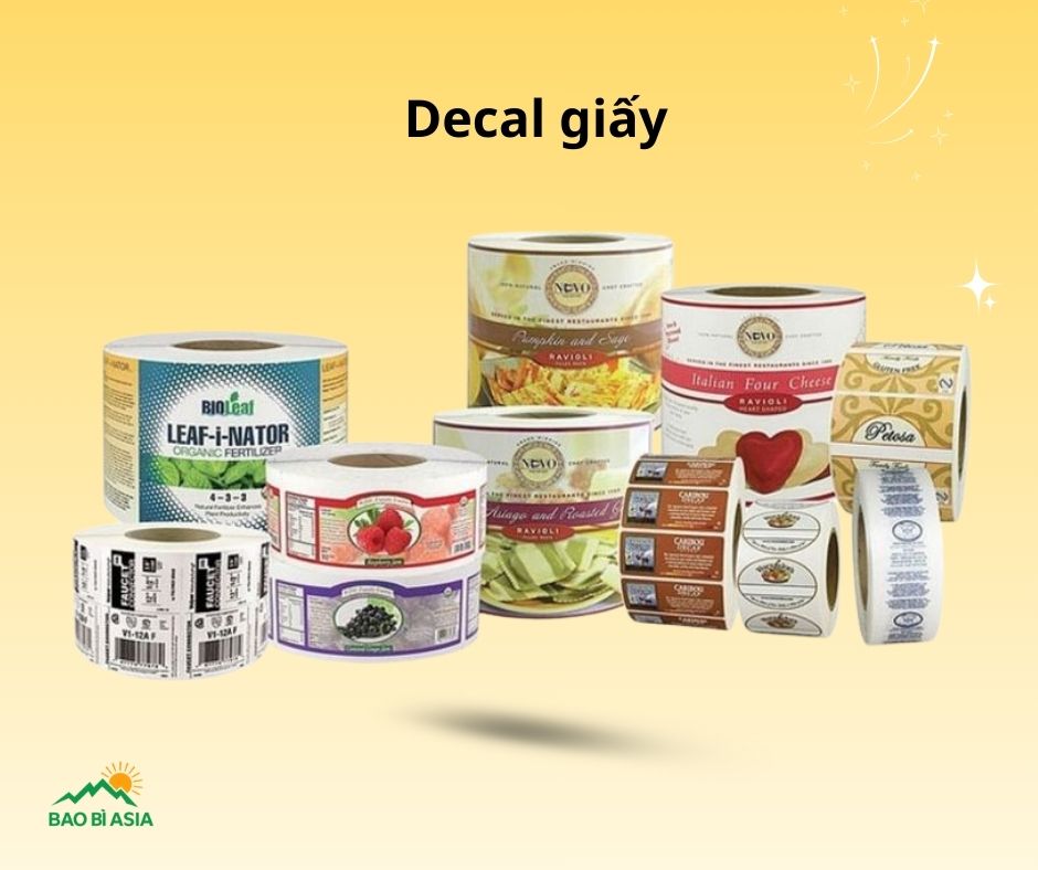 Decal giấy: Là loại decal có chi phí thấp, hợp với hàng khô, bao bì sử dụng ngắn hạn. Để tem/nhãn bền hơn, có thể cán thêm màng bóng hoặc màng mờ giúp hạn chế trầy xước và thấm nước bề mặt.