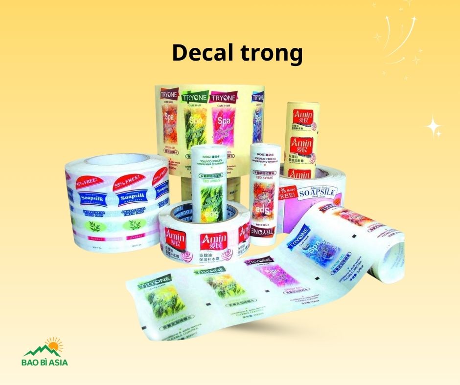 Decal trong suốt: Có nền trong, giúp nhìn rõ sản phẩm bên trong, tạo cảm giác như hình ảnh được in trực tiếp lên chai hoặc hũ. Phù hợp với chai nhựa, chai thủy tinh, ly nhựa để tăng tính thẩm mỹ và độ cao cấp.