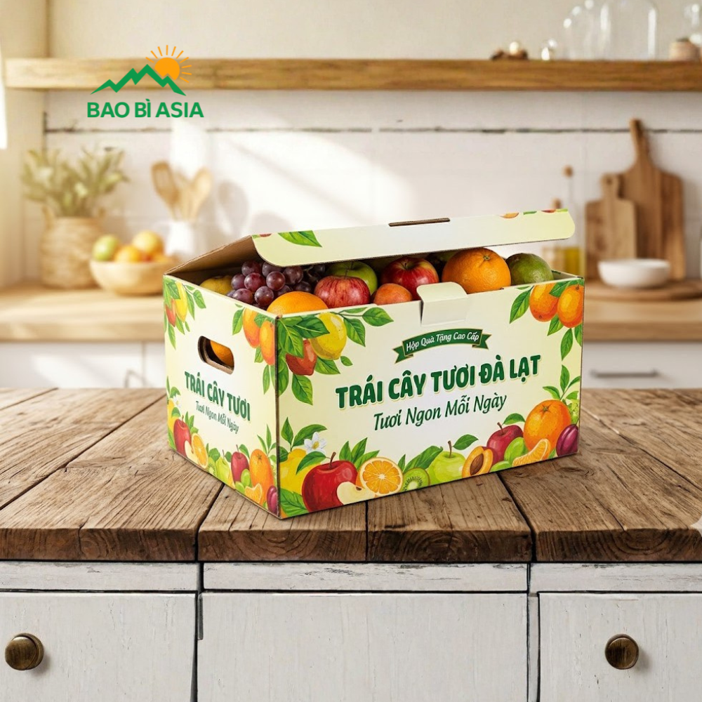 Hộp giấy đựng trái cây là giải pháp bao bì bền đẹp, giúp bảo quản sản phẩm an toàn và tăng tính thẩm mỹ khi trưng bày. Sản phẩm được làm từ chất liệu chắc chắn, in ấn sắc nét, phù hợp cho cả bán lẻ và quà tặng. Bao Bì Asia nhận thiết kế và in hộp theo yêu cầu, tối ưu chi phí và nâng cao nhận diện thương hiệu. Dưới đây là tổng hợp 30+ mẫu hộp giấy đựng trái cây đẹp, phù hợp với từng mục đích sử dụng, cập nhật bảng giá tham khảo, xu hướng thiết kế hiện nay, giúp khách hàng dễ dàng lựa chọn.