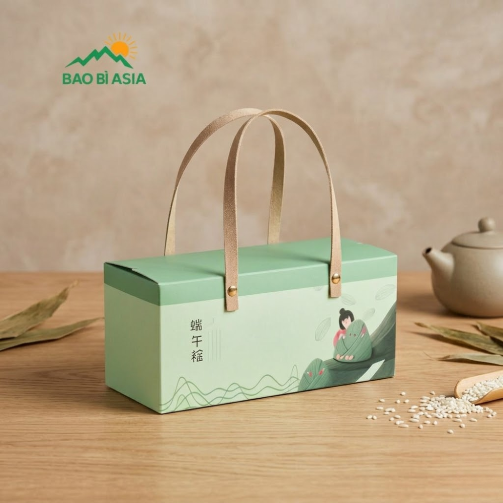 Đây là phiên bản cải tiến từ hộp nắp gập hoặc hộp carton, được bổ sung thêm quai xách bằng giấy hoặc dây dù. Thiết kế này giúp người dùng dễ dàng mang đi mà không cần túi phụ. Ngoài tính tiện lợi, quai xách còn tăng tính thẩm mỹ và phù hợp với các cửa hàng trái cây cao cấp hoặc mô hình bán mang đi. Hộp vẫn đảm bảo độ chắc chắn nếu phần quai được gia cố đúng kỹ thuật.