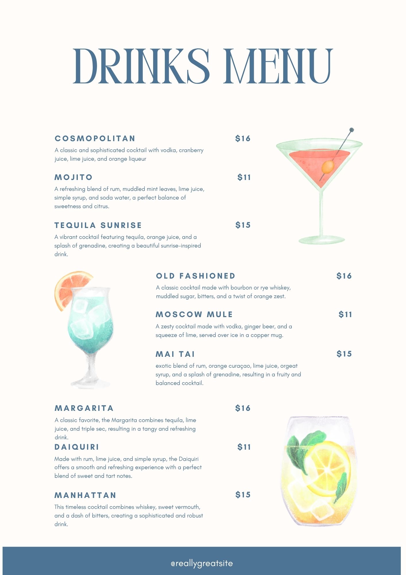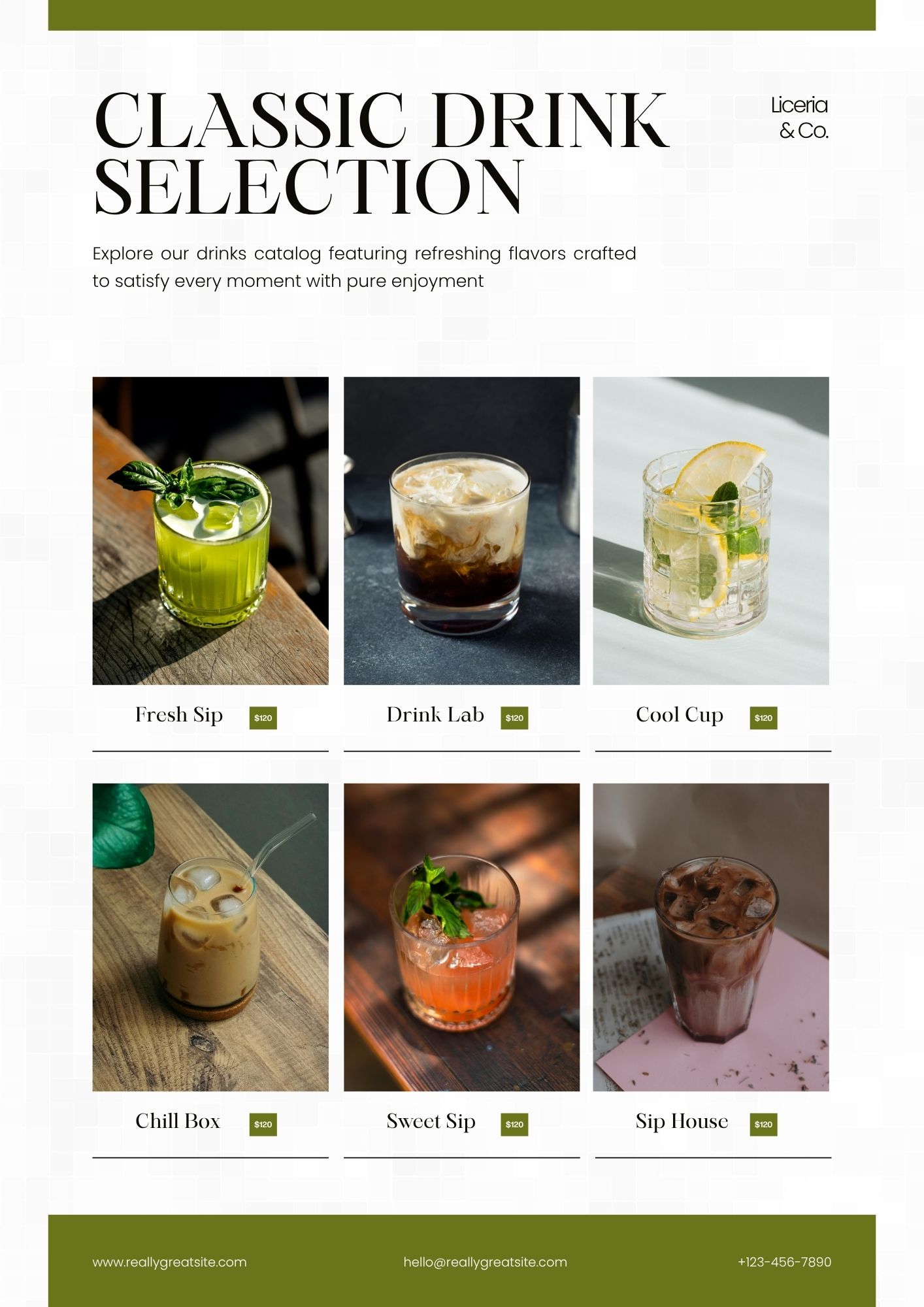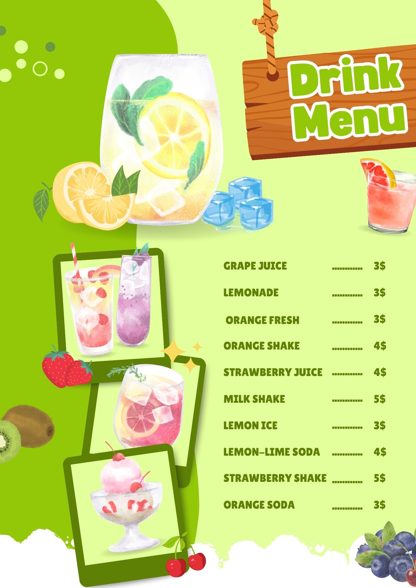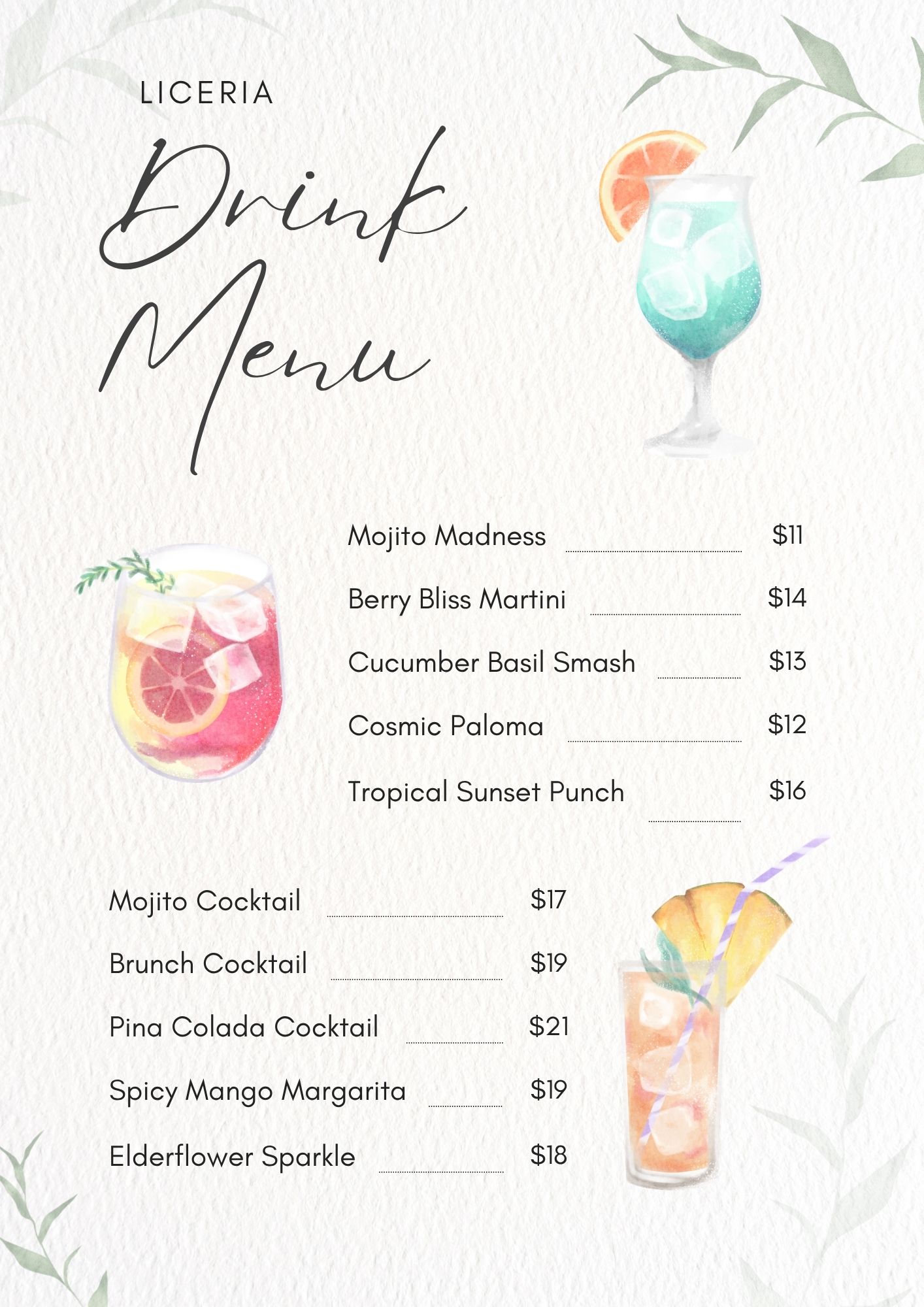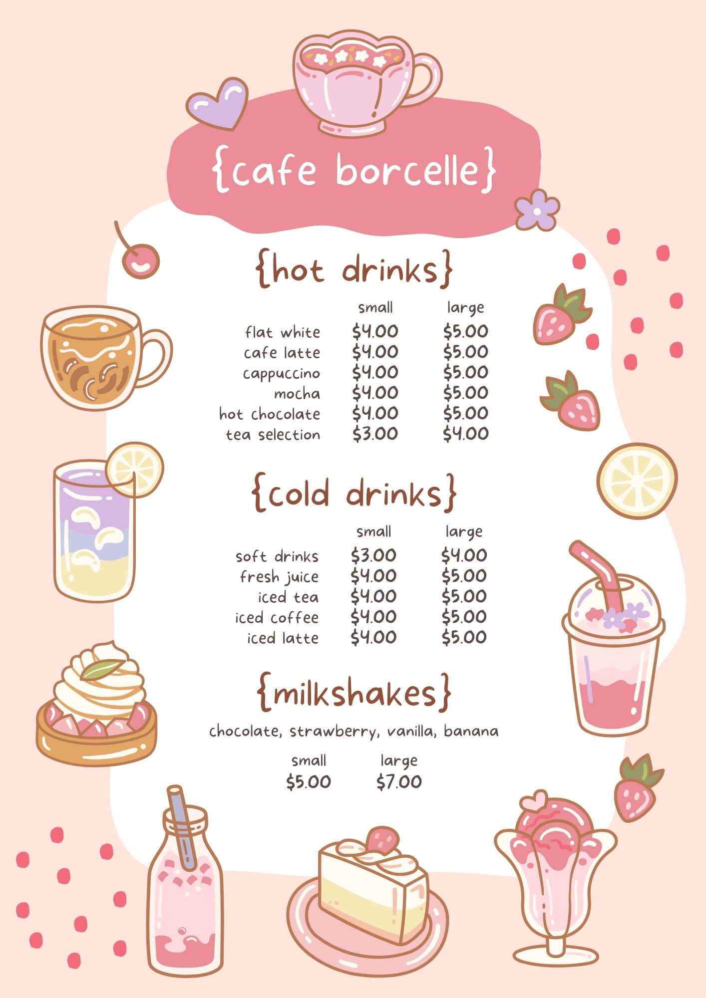 - Bố cục và nội dung rõ ràng: Menu nên được chia thành từng nhóm đồ uống như cà phê, trà, nước ép… với tiêu đề nổi bật. Tên món và giá cần đặt gần nhau, dễ nhìn để khách có thể lựa chọn nhanh mà không phải tìm kiếm lâu.