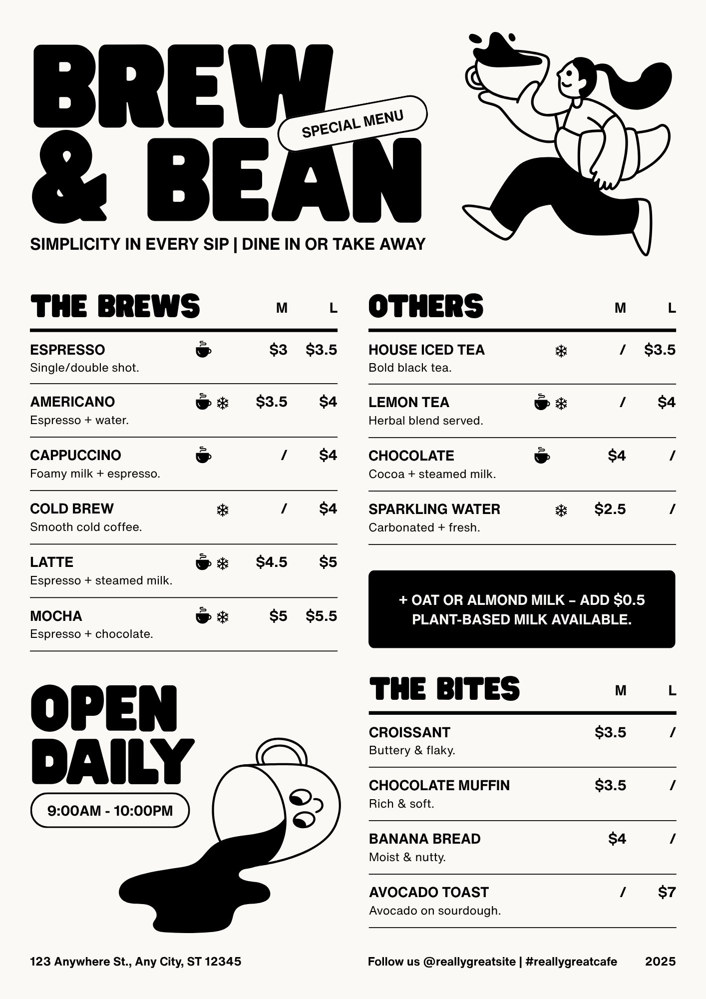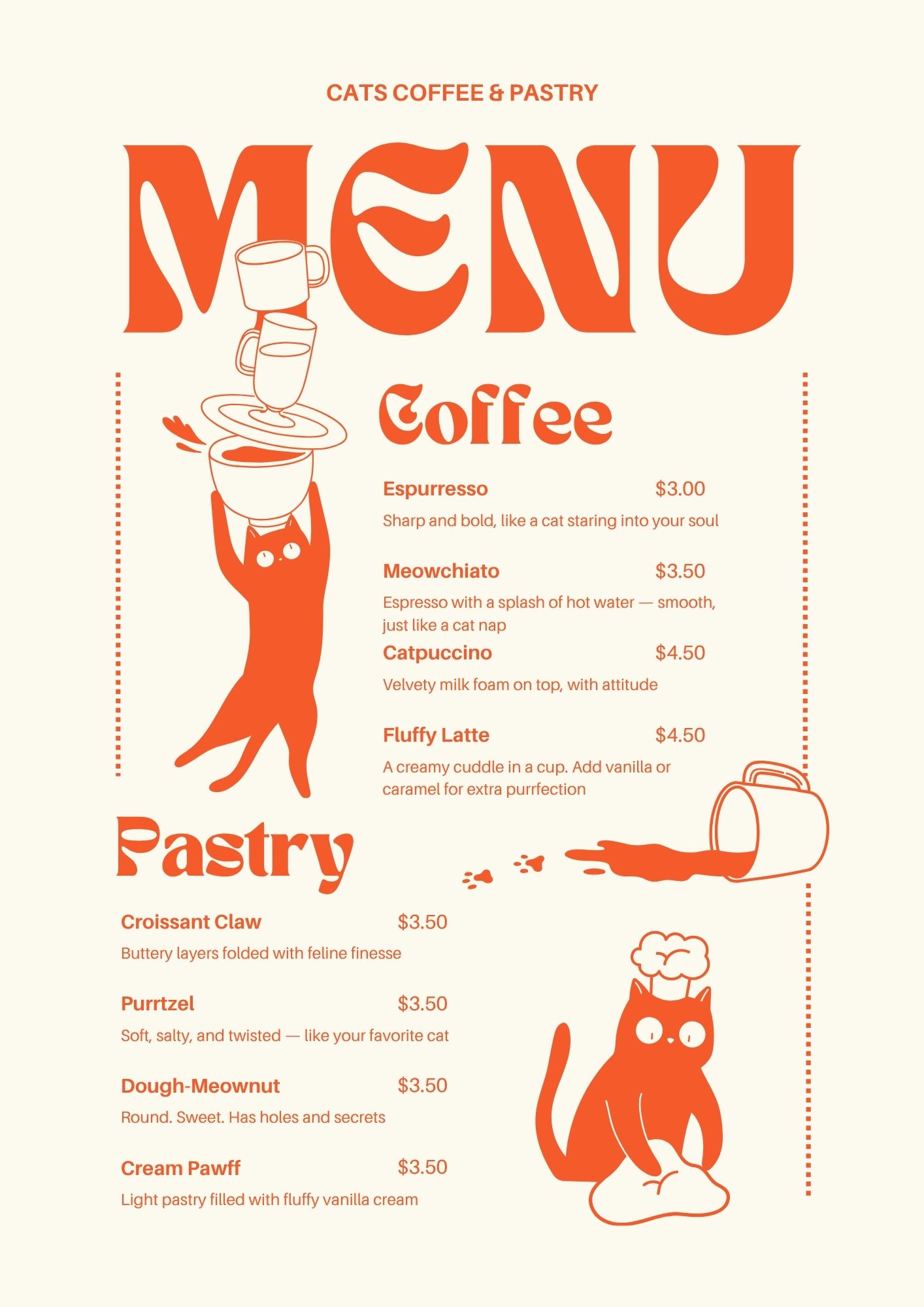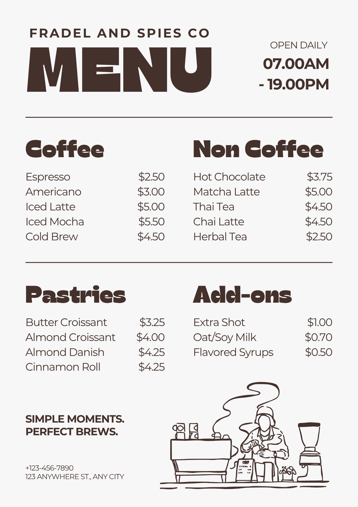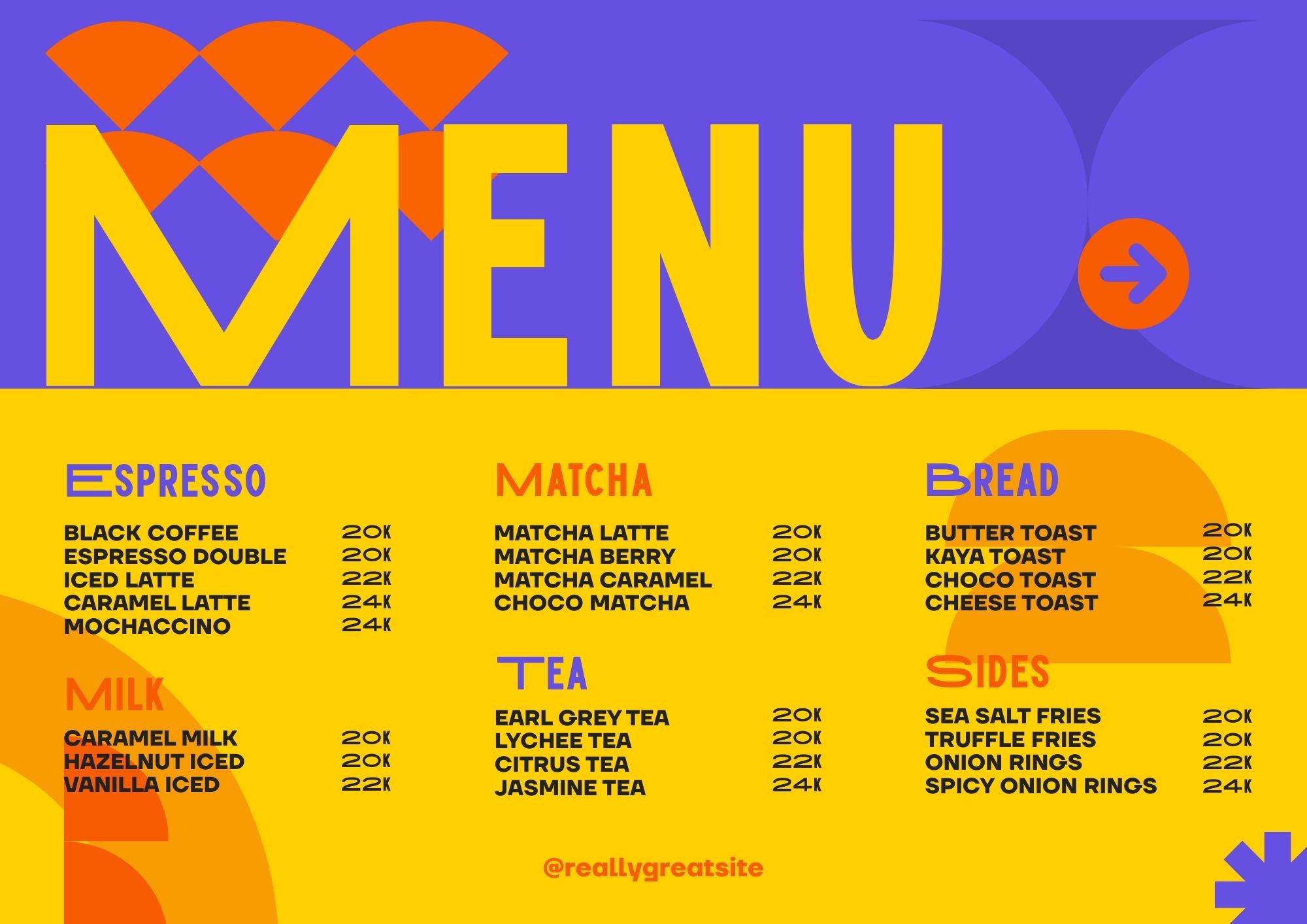 - Thiết kế đơn giản, đồng bộ: Hạn chế sử dụng quá nhiều màu sắc hoặc chi tiết trang trí. Nên chọn 1–2 font chữ dễ đọc và phối màu phù hợp với phong cách quán để tạo cảm giác chuyên nghiệp và nhất quán.