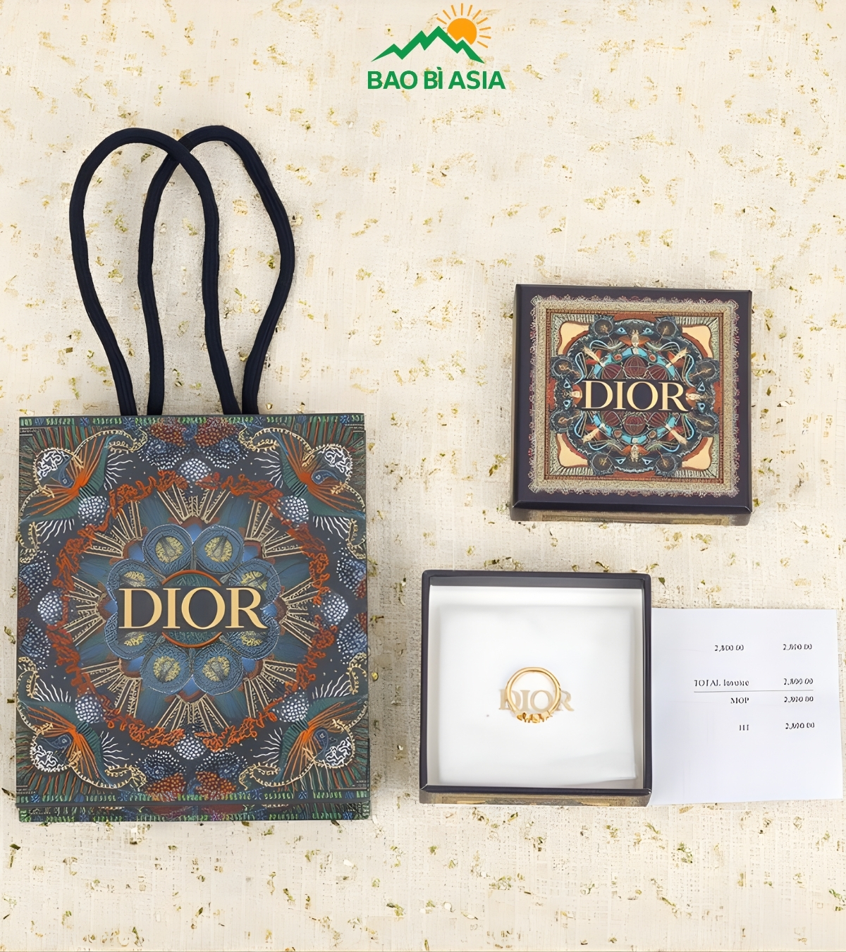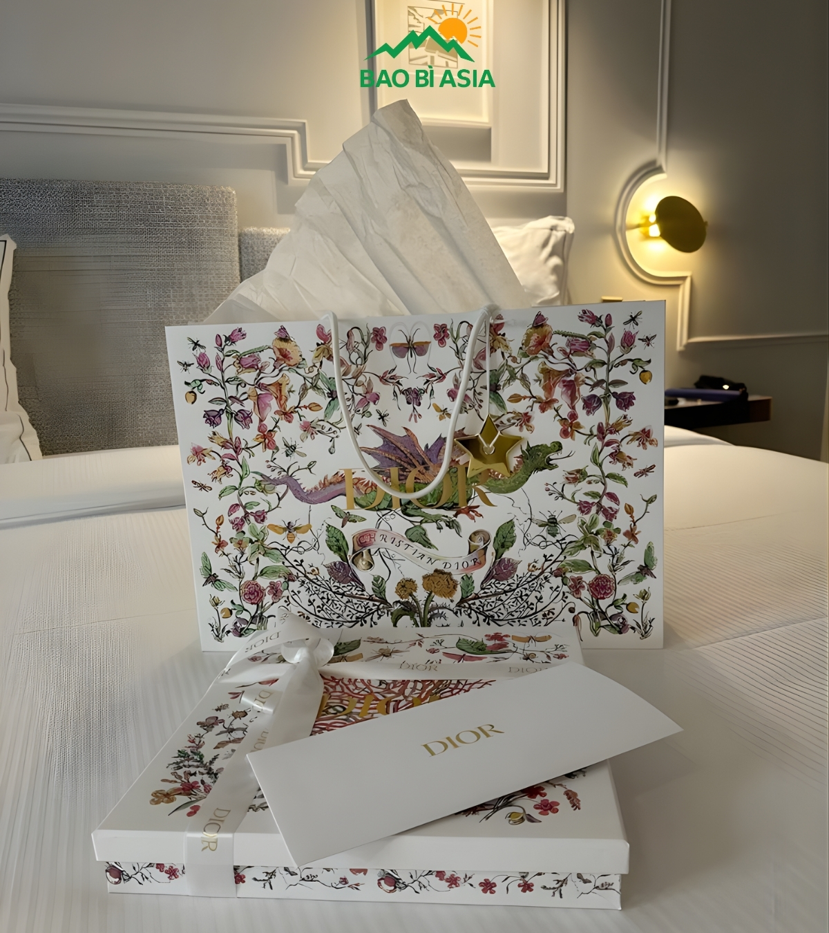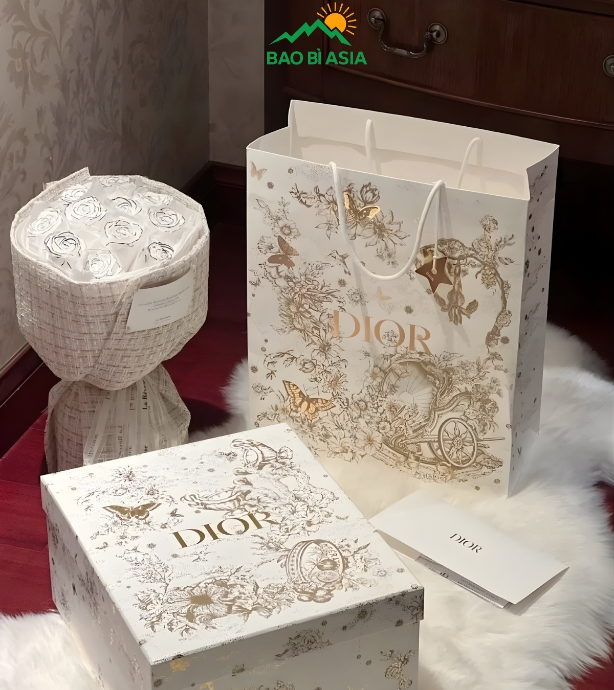 Túi giấy Dior đóng vai trò quan trọng trong việc truyền tải hình ảnh sang trọng, đẳng cấp của thương hiệu. Tại Bao Bì Asia, mọi quy cách in túi giấy Dior đều được xây dựng theo tiêu chuẩn cao cấp, chú trọng từ chất liệu, kích thước đến công nghệ in và gia công sau in, nhằm tạo ra những mẫu túi giấy Dior và túi hộp Dior có tính thẩm mỹ cao, độ bền tốt và giá trị sử dụng lâu dài.