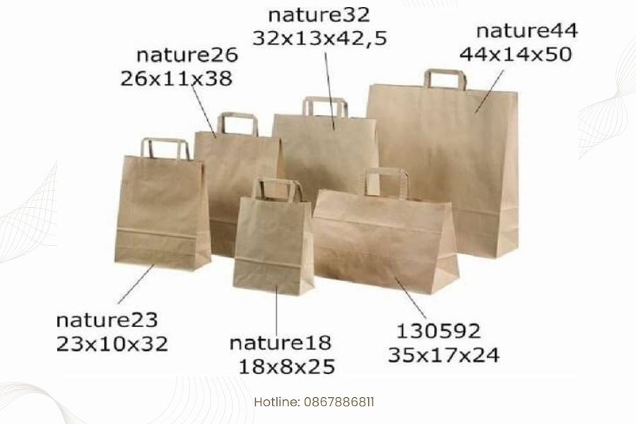 Kích thước túi cần phù hợp với sản phẩm bên trong để đảm bảo tính thẩm mỹ và tiết kiệm chi phí sản xuất. Túi quá lớn gây lãng phí vật liệu, trong khi túi quá nhỏ làm giảm trải nghiệm sử dụng. Thông thường, kích thước túi nên dư từ 0,5–1 cm mỗi chiều so với sản phẩm để dễ sắp xếp và tạo cảm giác gọn gàng khi cầm tay. Dưới đây là các kích thước phổ biến của in túi giấy:
